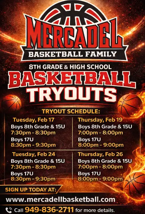 Thank you for attending our tryouts to join the Mercadel Elite Basketball Program in Orange County! We are excited to welcome you to one of the strongest basketball programs in the area, dedicated to helping you become a better player and person.